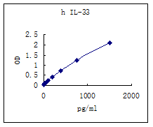 The Human IL-33 ELISA (Enzyme-Linked Immunosorbent Assay) kit is designed for detection of IL-33 in human plasma, serum, and cell culture samples.This assay employs a quantitative sandwich enzyme immunoassay technique that measures human IL-33 in approximately 3.5 hours. A polyclonal antibody specific for human IL-33 has been pre-coated onto a 96-well microplate with removable strips. IL-33 in standards and samples is sandwiched by the immobilized antibody and a biotinylated polyclonal antibody specific for human IL-33, which is recognized by a streptavidin-peroxidase (SP) conjugate. All unbound material is washed away and a peroxidase enzyme substrate is added. The color development is stopped and the intensity of the color is measured.