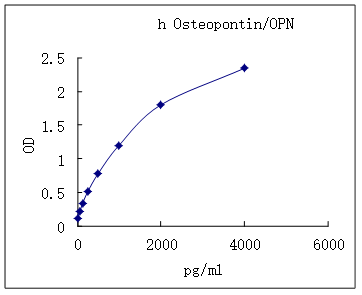The Human Osteopontin/OPN ELISA (Enzyme-Linked Immunosorbent Assay) kit is designed for detection of Osteopontin/OPN in human plasma, serum, and cell culture samples.This assay employs a quantitative sandwich enzyme immunoassay technique that measures human Osteopontin/OPN in approximately 3.5 hours. A polyclonal antibody specific for human Osteopontin/OPN has been pre-coated onto a 96-well microplate with removable strips. Osteopontin/OPN in standards and samples is sandwiched by the immobilized antibody and a biotinylated polyclonal antibody specific for human Osteopontin/OPN, which is recognized by a streptavidin-peroxidase (SP) conjugate. All unbound material is washed away and a peroxidase enzyme substrate is added. The color development is stopped and the intensity of the color is measured.